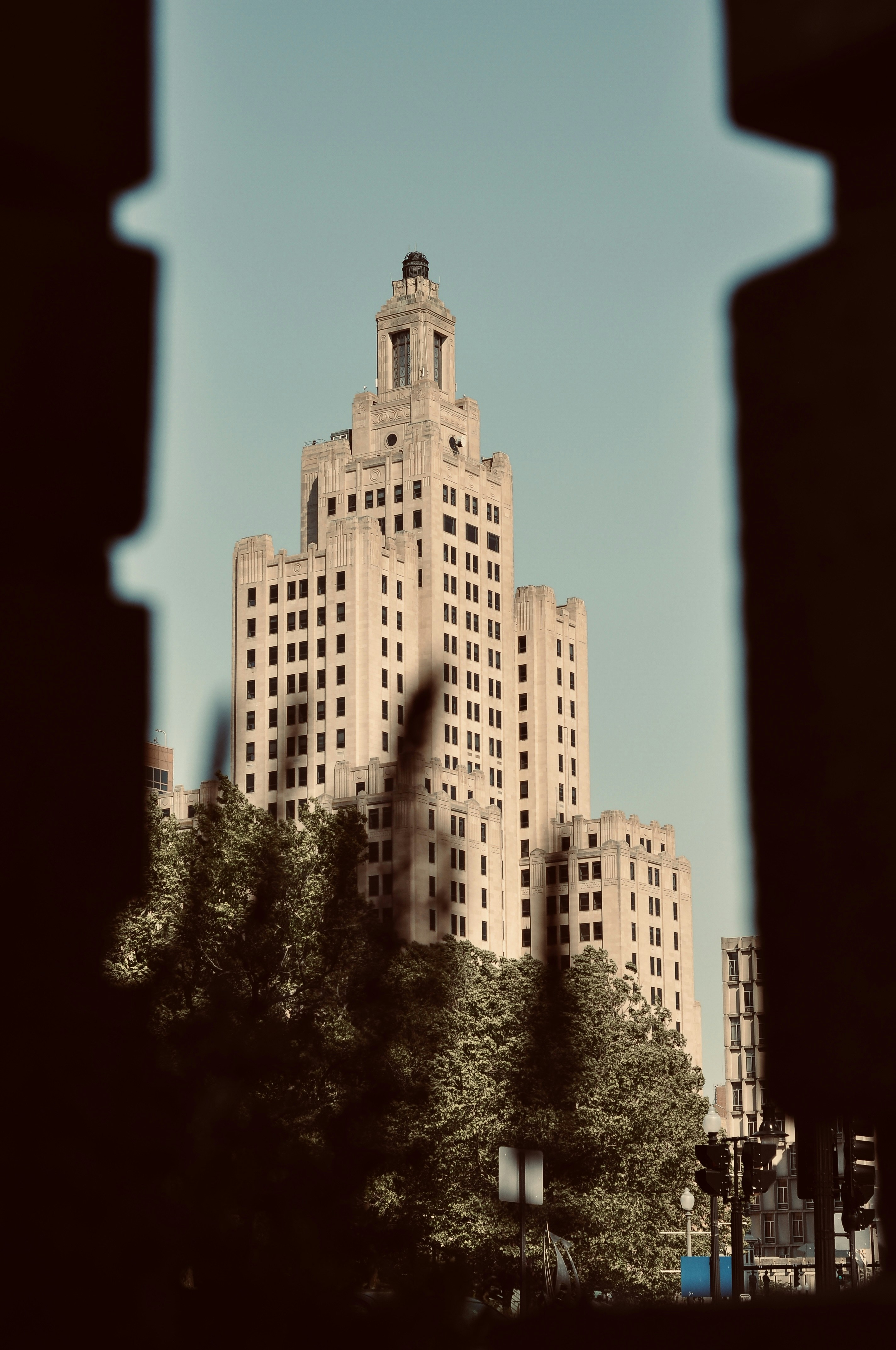 Shipping containers used to barricade the landmark Bank Buildings (most recently a Primark) during their restoration after they were gutted by fire in 2018.