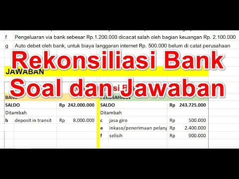 January 14, 2018 - Rekonsiliasi bank dan contoh soal Selamat bertemu kembali dalam pembelajaran akuntansi, kali ini kita akan membahas mengenai rekonsiliasi bank dan contoh soal. Dalam pemahaman dan praktik mengenai rekonsiliasi bank yang dilakukan oleh pihak perusahaan dan pihak bank akan sulit, jika kedua pihak ...