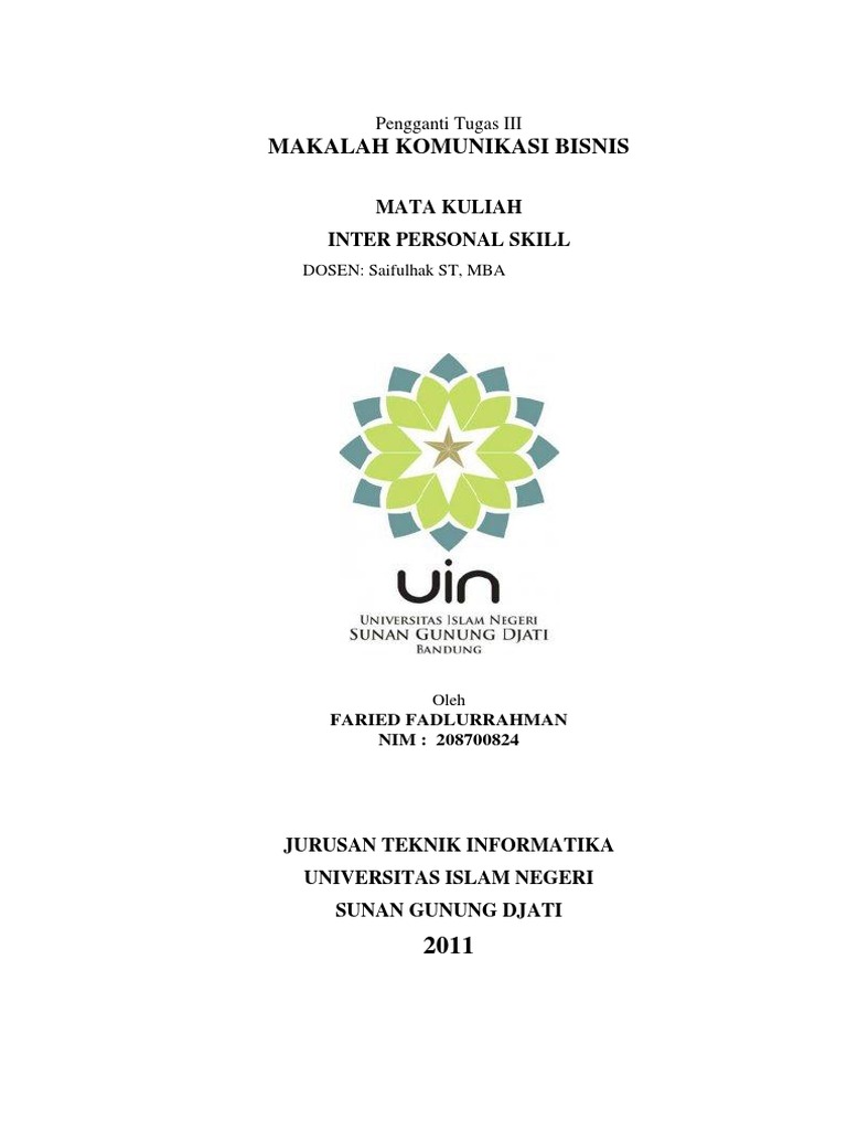 Makalah Komunikasi Bisnis - Kumpulan Makalah Jul 23, 2019 · Makalah Komunikasi Bisnis. BAB I. PENDAHULUAN. A. Latar Belakang. Seperti yang kita ketahui bersama jika komunikasi merupakan elemen terpenting yang diberikan tuhan kepada manusia, karena dengan komunikasi kita menjadi mahluk hidup bukan benda lagi, komunikasi bisa menghidupkan nyawa sosial yang menjadi harapan kita untuk tetap berperan sebagai ...