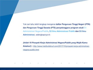 6 Pekerjaan Jurusan Administrasi Niaga yang Miliki Prospek ... Banyak, perusahaan perbankan, mencari calon kandidat lulusan administrasi bisnis, dan kamu bisa menjadi bagian frontliner bank, seperti teller atau customer service. Atau kamu juga bisa bekerja di bagian back office. Untuk seorang pegawai bank, kamu bisa mendapatkan gaji mulai dari Rp5 juta hingga belasan juta lho. 5. Tenaga Pengajar / Dosen