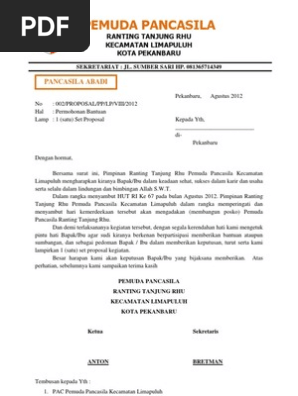 Contoh proposal pengajuan dana kegiatan organisasi pdf. Contoh Surat Permohonan Bantuan Dana Kegiatan Organisasi ... Berikut ini admin berikan contoh proposal pengajuan dana kegiatan organisasi pdf sederhana. Tujuan dari surat permohonan ini adalah untuk memohon bantuan atau sumbangan dana sesuai rencana anggaran. 001/ra.ds/ii/2020 perihal permohonan bantuan dana hibah / bansos provinsi banten selaku . Proposal Bantuan Dana Operasional Organisasi - TUKANG NGETIK Proposal ini disusun berdasarkan kepada kebutuhan yang sangat mendesak mengenai penyediaan sarana prasarana dan operasional organisasiP3A Mitra Cai Tirta Marga I Desa Margacinta Kecamatan Cijulang KabupatenPangandaran yang baik dan memadai bagi peningkatan kualitas pertanian, juga sebagai upaya menuju desa yang swasembada pangan. Contoh Proposal Kegiatan Pengajian - Beinyu.com Contoh Proposal Pengajian Rutin. N R P. Contoh proposal tasyakkur imtihan dan pengajian umum haflah akhirussanah 1. Itulah contoh proposal kegiatan Isra Miraj beserta permohonan pengajuan dana. Download Contoh Proposal Isra Miraj 2020 PDF 1600 MB - SamPDF SamPDF akbar proposal kegiatan pengajian umum proposal kegiatan pengajian rutin proposal ... Karang Taruna Contoh Proposal Pengajuan Dana - Pdf ... Contoh proposal pengajuan dana kegiatan karang taruna pdf contoh proposal pengajuan dana kegiatan karang taruna, contoh proposal pengajuan dana kegiatan . A) bahwa karang taruna merupakan organisasi sosial wadah pengembangan generasi muda yang mampu menampilkan karakternya melalui cipta, rasa, .