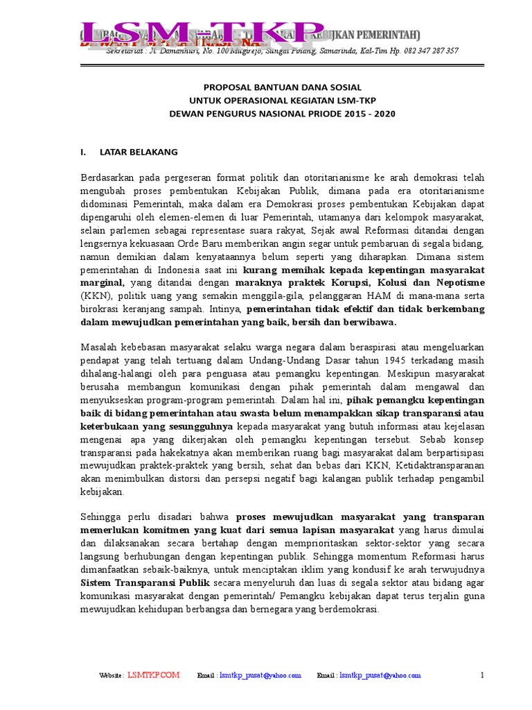 (PDF) PROPOSAL PERMOHONAN BANTUAN DANA - Academia.edu Syakur, S.Hi. Pengawas Ustdz Roji Hartono SN Pengurus Ketua : Ustdz Ropani DS Sekretaris : Yudhistira I. Pramana, S.H. Bendahara : Beny Benardi, S.T., M.T. Pembangunan Madrasah dan Pesantren Mesjid TPA Ustdz Rujito Ustdz Arif Pambudhi Ustdz Rahino Suranto Yayasan Rifaul Jannah Sunggingan PROPOSAL PERMOHONAN BANTUAN DANA DAFTAR DONATUR untuk ... Contoh Proposal Pengajuan Dana Kegiatan Karang Taruna Pdf ... Demikian proposal pengajuan bantuan dana ini kami sampaikan, sudilah kiranya ... Selaku Pemuda kita dituntut aktif dalam kegiatan-kegiatan masyarakat, .... DOC) Proposal Permohonan Dana Karang Taruna | deri fathulhijri ... pengajuan dana pdf nbsp; Kegiatan. contoh proposal pengajuan dana .... 9 Contoh Proposal Kegiatan Bantuan Dana Kerjasama ... 24++ Contoh proposal pengajuan dana kegiatan organisasi ... Prosedur Pengajuan Bantuan Dana Kegiatan 1. Download Contoh Proposal Ormas PDF 1800 MB - SamPDF. Proposal Kegiatan Seminar Kampus. Contoh Proposal Kegiatan Sekolah Yang Baik Dan Benar Buat kamu yang belum tahu kata proposal berasal dari bahasa Inggris yaitu Propose yang artinya pengajuan atau mengajukan atau permohonan. Contoh Surat Permohonan Bantuan Dana Kegiatan Organisasi ... Berikut ini admin berikan contoh proposal pengajuan dana kegiatan organisasi pdf sederhana. Tujuan dari surat permohonan ini adalah untuk memohon bantuan atau sumbangan dana sesuai rencana anggaran. Nah, jika anda adalah pengurus suatu organisasi yang . Selain itu, anda juga bisa meminta bantuan dana kepada pihak lain yang anda rasa .