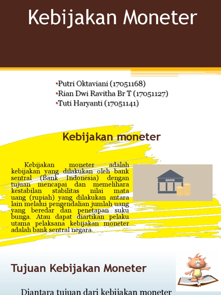 Kebijakan Moneter di Indonesia dan Instrumennya - Kompasiana.com Assalamu'alaikum. Hai, Teman-teman! Tahukah kalian apa itu kebijakan moneter?. Kebijakan moneter adalah salah satu kebijakan ekonomi makro yang berhubungan langsung dengan peredaran uang atau jumlah uang yang beredar di masyarakat dengan tujuan untuk mengendalikan jumlah uang beredar, hal ini sesuai dengan Undang-Undang No. 3 Tahun 2004 Pasal 7 tentang Bank Indonesia.
